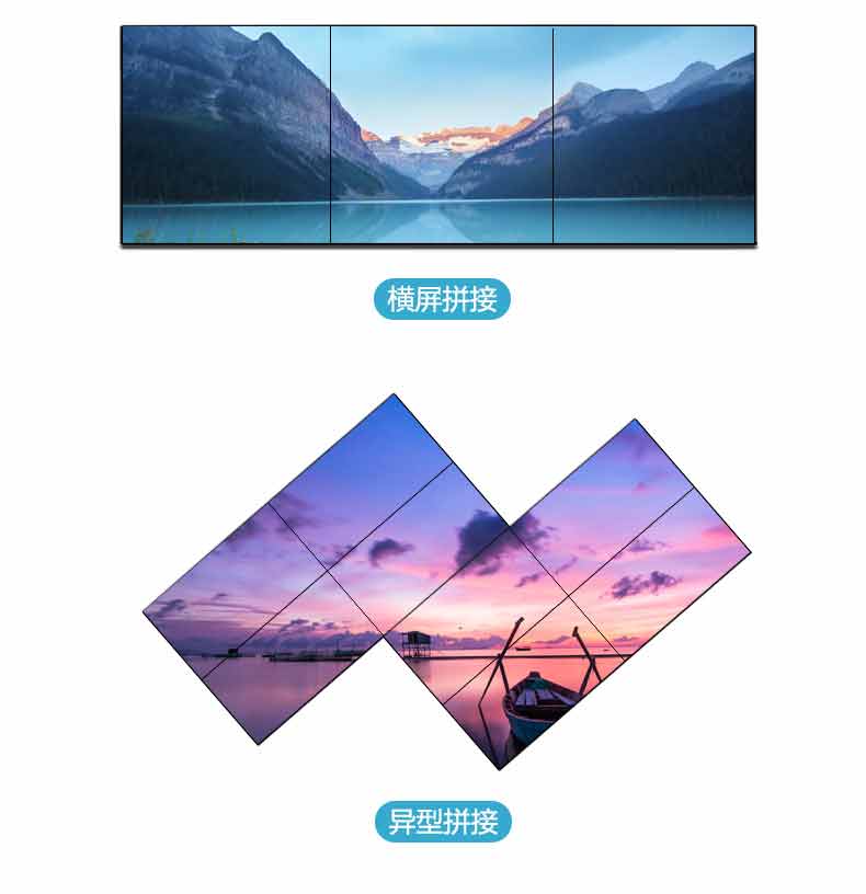 55英寸超窄边拼接屏采用LED背光技术,使用寿命可达60000小时以上;